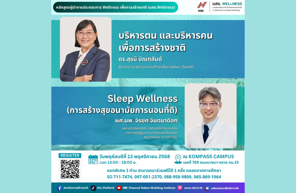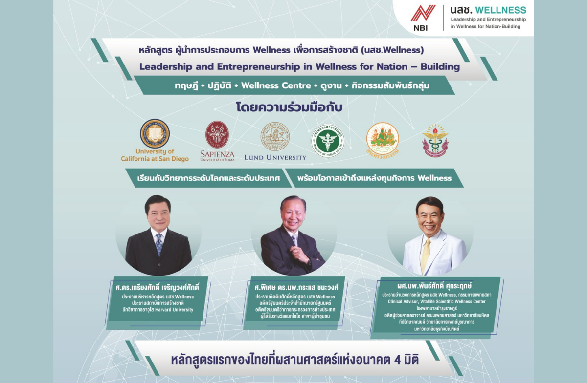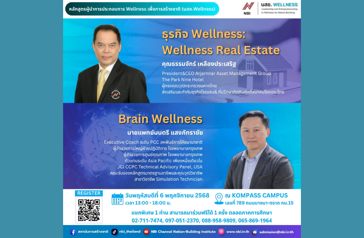 ขอเชิญร่วมฟังบรรยายในหลักสูตรผู้นำการประกอบการ Wellness เพื่อการสร้างชาติ (นสช. Wellness) รุ่นที่ 8
